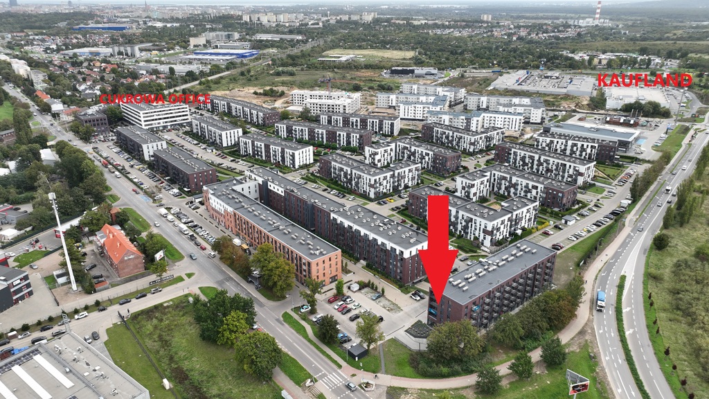 - Nowoczesne osiedle mieszkaniowe z dużym ruchem pieszym i samochodowym