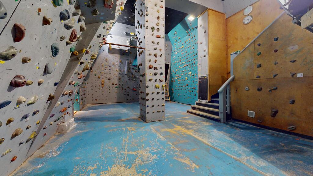 Lokal isytuowany jest na dwóch poziomach, w którym funkcjonowały ścianki wspinaczkowe.