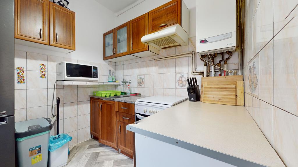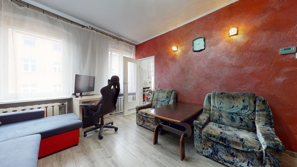 Mieszkanie znajduje się w drugiej linii zabudowy na trzecim piętrze zadbanej oficyny. Powierzchnia użytkowa 40,14 m2, na którą składają się 2 pokoje, kuchnia, łazienka i przedpokój.
