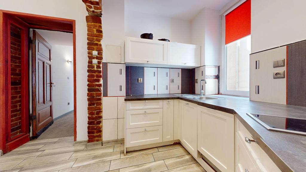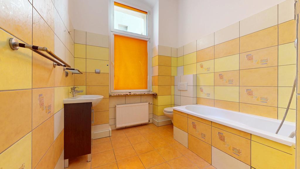 Mieszkanie wymaga odświeżenia (lub małego remontu - w zależności od własnych preferencji) Idealne pod wynajem pod pracowników (możliwość zakwaterowania 10-12 osób). Podłogi w pokojach wykończone panelami lub panelową wykładziną dywanową, w kuchni i łazienkach terakota, ściany gładkie malowane w pokojach, w kuchni częściowo gładkie malowane częściowo glazura, w łazienkach glazura. Ogrzewanie i ciepła woda z pieca gazowego dwuobiegowego, okna plastikowe nowego typu. Uroku pomieszczeniom dodają zachowane oryginalne sztukaterie na sufitach oraz oryginalne ościeżnice i drzwi.