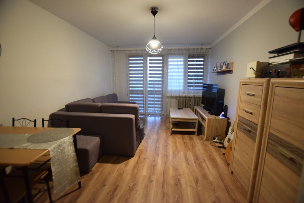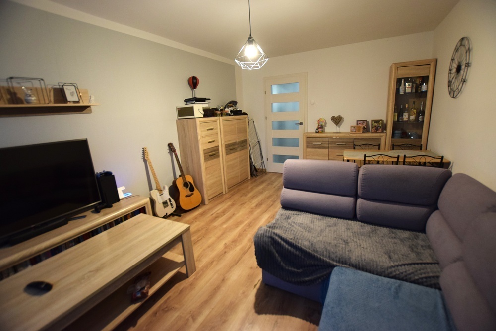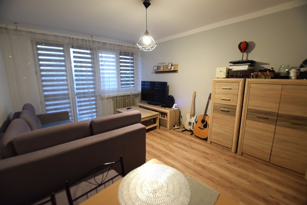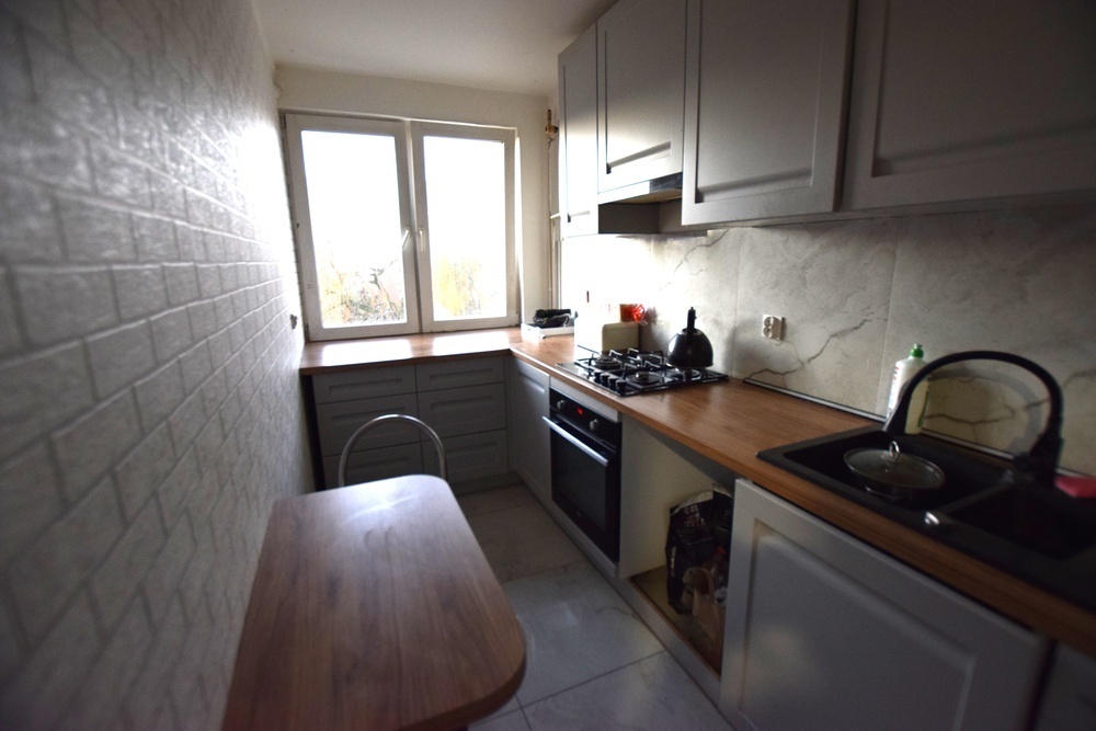 Dwupokojowe mieszkanie 48m2 znajdujące się na czwartym piętrze w czteropiętrowym budynku z 1980 roku.Mieszkanie dwustronne- okna wychodzą na wschód i zachód.W skład mieszkania wchodzi:-pokój dzienny;-sypialnia;-kuchnia;-łazienka;-przedpokój.Do mieszkania przynależy piwnica.W mieszkaniu dla przyszłych nabywców pozostaje większość rzeczy widocznych na zdjęciach.Mieszkanie spółdzielczo-własnościowe z księgą wieczystą- możliwość zakupu przez osoby spoza UE.Czynsz wynosi 600 złotych przy 3 osobach. Zawarty w nim jest min.: woda zimna i ciepła, ogrzewanie, fundusz remontowy, utrzymanie części wspólnych.Możliwość swobodnego parkowania w pobliżu budynku.Nieruchomość znajduje się w pobliżu wielu punktów usługowych. Od przystanku autobusowego jest około 7 minut, od tramwajowego ok. 10 minut pieszo.*powyższe informacje zostały sporządzone na podstawie oświadczeń i nie są ofertą w rozumieniu przepisów prawa - zalecamy ich osobistą weryfikację.