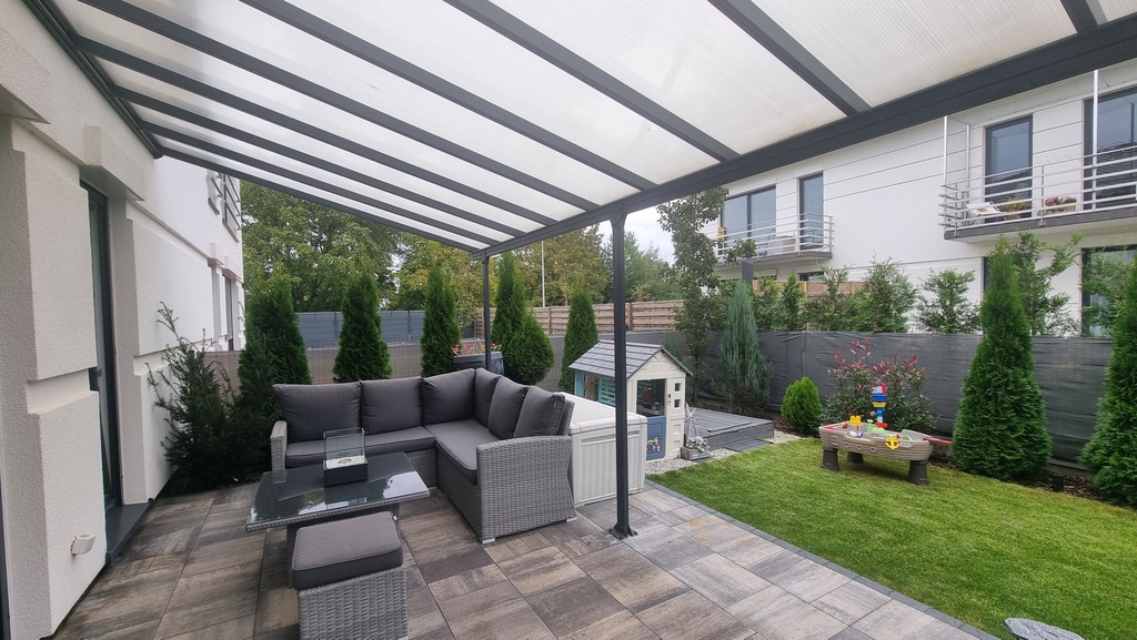 W ogrodzie znajdziesz liczne nasadzenia, domek ogrodowy o powierzchni 7 m? oraz duży, zadaszony taras (20 m?), idealny na poranną kawę czy spotkania z przyjaciółmi.