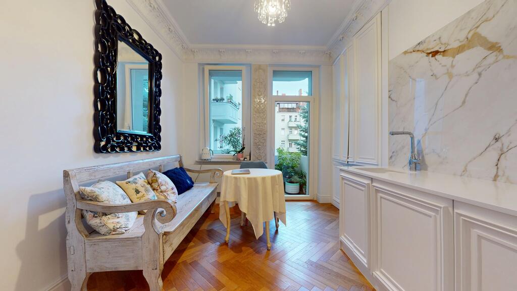 • Sztukateria na ścianach, która podkreśla wyjątkowy, klasyczny styl wnętrza