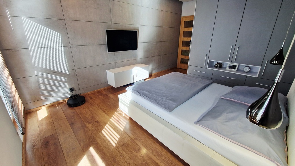- duży, 100-calowy ekran podwieszony na suficie oraz rzutnik, dające dodatkowe wrażenia z filmów czy gier.