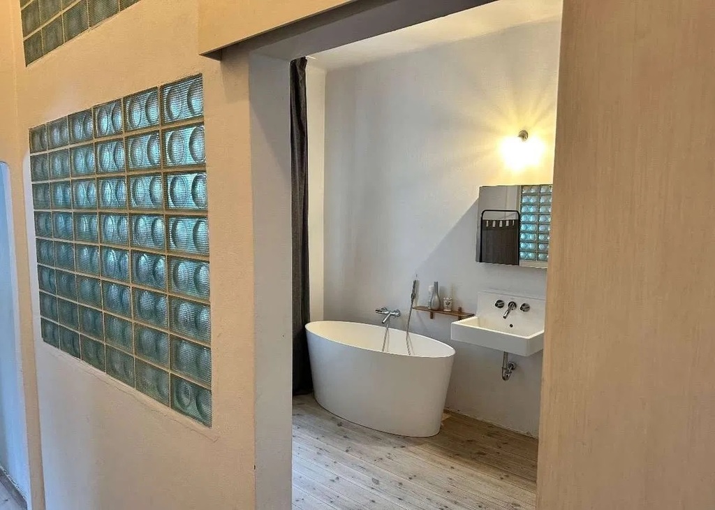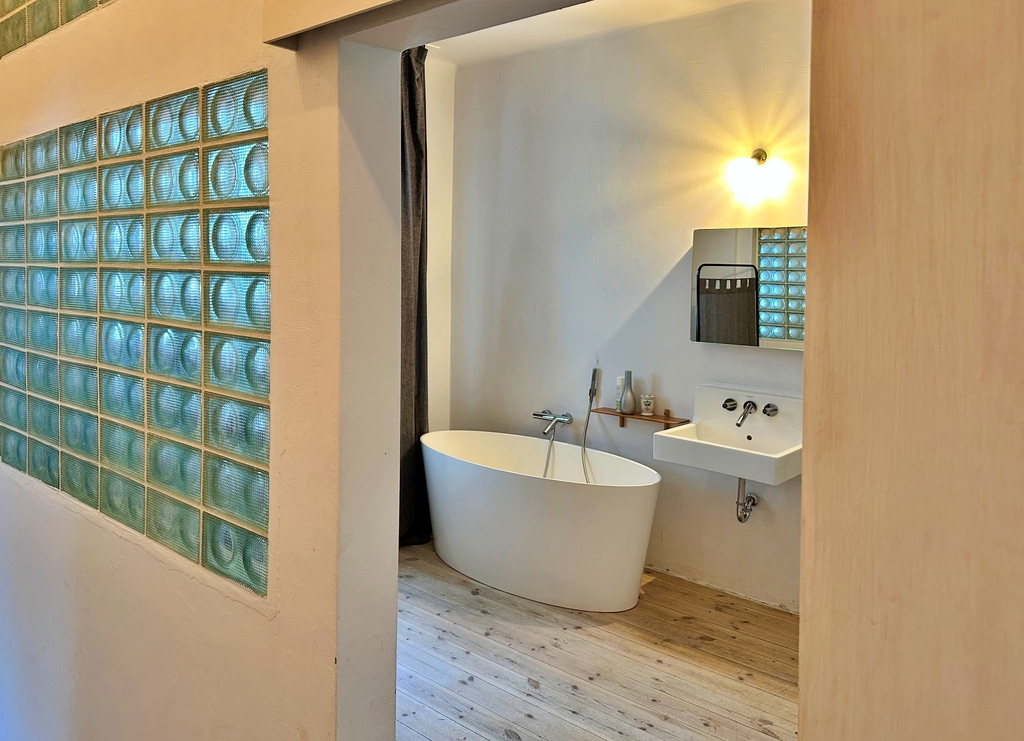 Luksfery użyte w nowo powstałej ścianie również pochodzą z okresu