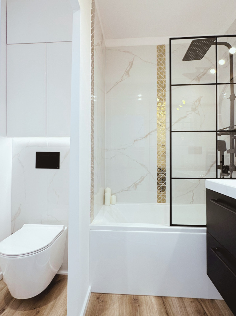 - Łazienki wyposażonej w wannę i WC,