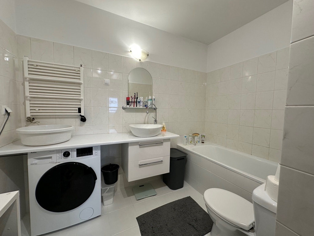 Na tym poziomie znajduje się również duża łazienka z wanną oraz pralką.