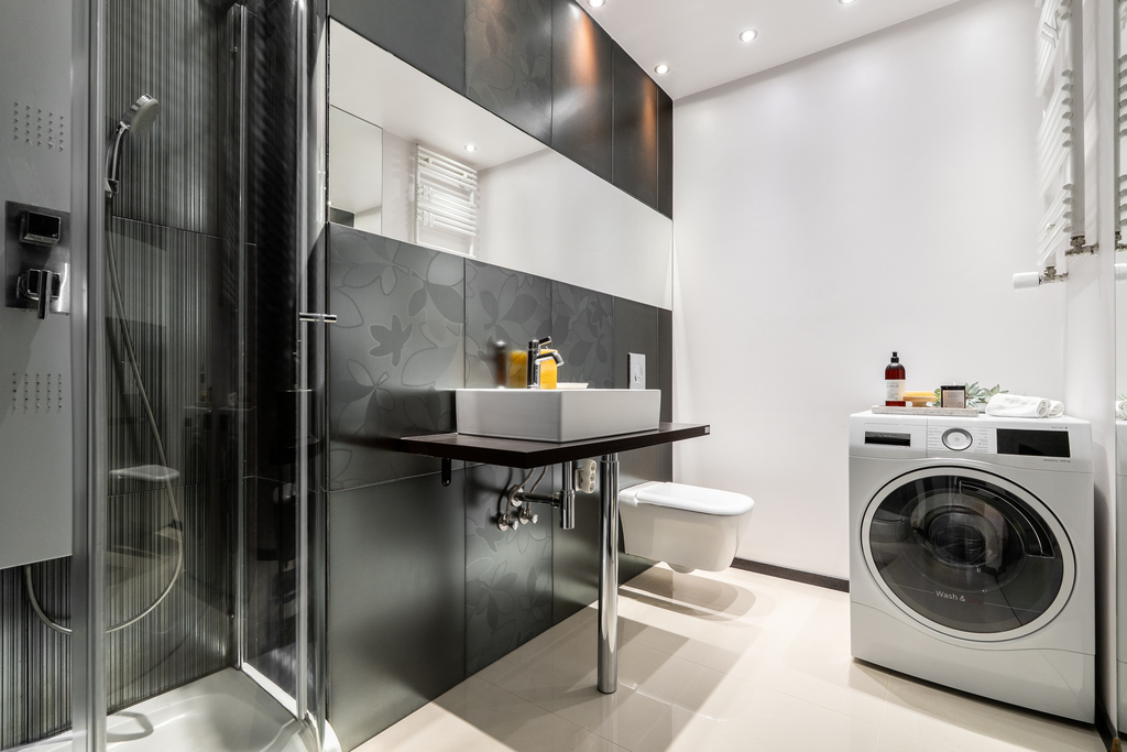 - łazienka z nową kabiną prysznicową oraz eleganckimi wykończeniami zapewnia codzienny komfort.