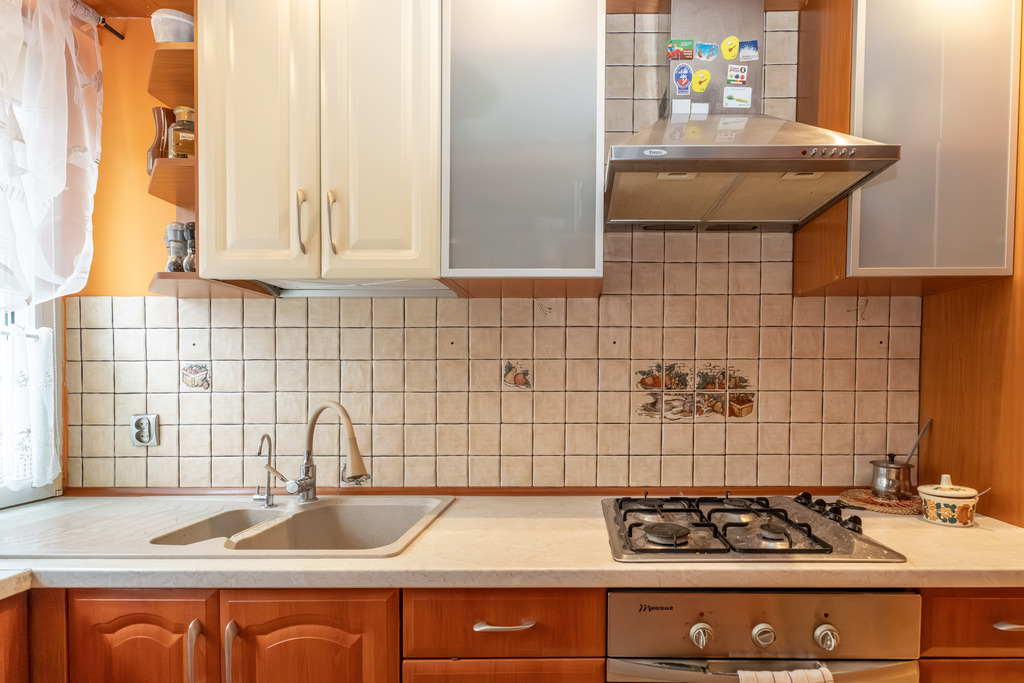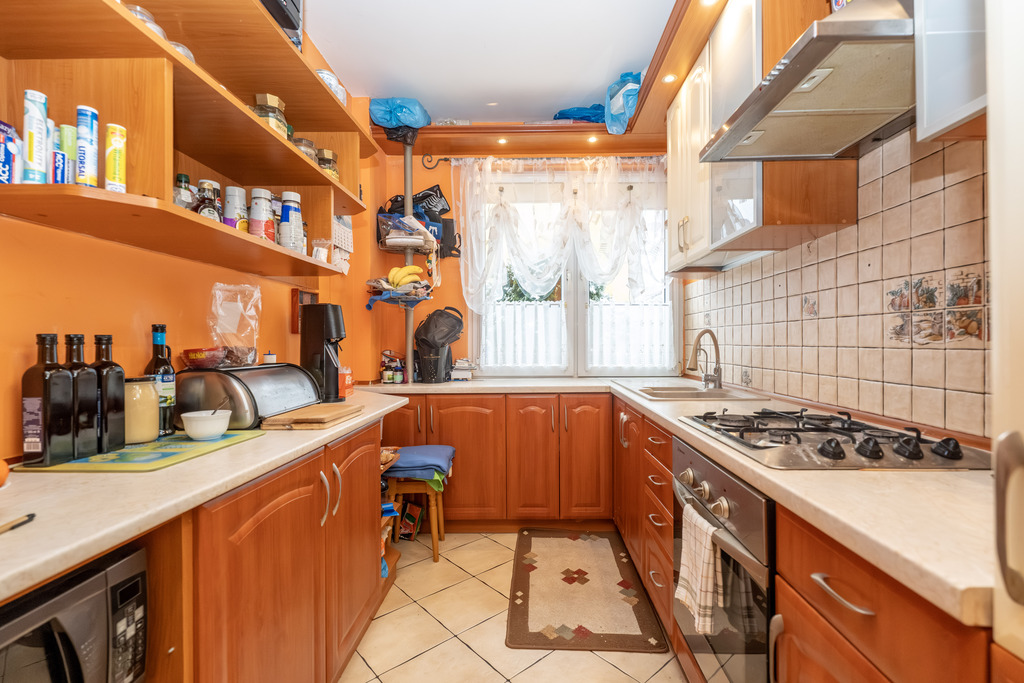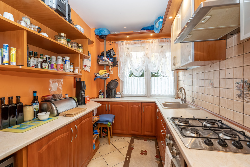 Kuchnia widna, zabudowa kuchenna ze sprzętem AGD w cenie mieszkania. Łazienka razem z WC, kabiną prysznicową w glazurze i terakocie.
