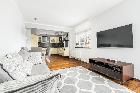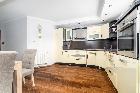 - Salon z aneksem kuchennym: Serce domu z wyjściem na większy balkon (6 m?). Kuchnia w eleganckiej zabudowie stałej, w pełni wyposażona w AGD.