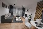 Oddzielna kuchnia wyposażona w niezbędne sprzęty AGD i meble