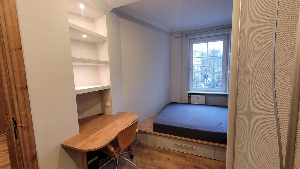 Zapraszamy do zapoznania się z ofertą mieszkania na szczecińskim Niebuszewie.Mieszkanie składa się obecnie z 2 pokoi, w większym aneks kuchenny, oraz łazienki.Mieszkanie pierwotnie było kawalerką z osobną kuchnią.Na podłogach panele, okna PCVMieszkanie przeszło gruntowny remont w 2005 roku obejmujący wymianę instalacji w tym elektrycznej.Zachowana jest oryginalna wewnętrzna stolarka drzwiowa- odnowiona.Ogrzewanie miejskie, ciepła woda z podgrzewacza elektrycznegoCzynsz ok 570 zł ( w tym ogrzewanie)Łazienka w glazurze i terakocie, kabina prysznicowaW mniejszym pokoju szafa w zabudowie, oraz łóżko robione na zamówienie, ze zmyślnymi schowkami i pojemnikami.Przynależna- bezpieczna piwnica (podwójne drzwi )Lokalizacja w centralnym punkcie osiedla, dostępna komunikacja miejska, autobusy i tramwaje.*powyższe informacje zostały sporządzone na podstawie oświadczeń i nie są ofertą w rozumieniu przepisów prawa - zalecamy ich osobistą weryfikację.