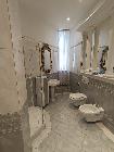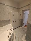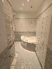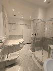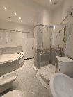 - łazienka z oknem, wyposażona w wannę, kabinę prysznicową, bidet oraz toaletę,