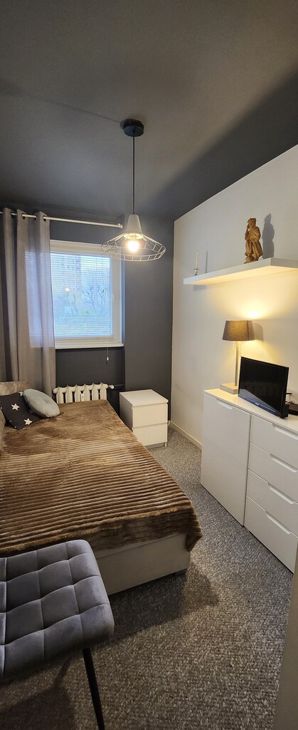 Mieszkanie posiada 2 pokoje sypialniane, pokój dzienny z aneksem kuchennym, z którego jest wyjście na duży balkon od strony południowo-zachodniej oraz łazienkę i przedpokój. Do mieszkania przynależy piwnica ok. 6 mkw. Przed budynkiem dużo ogólnodostępnych miejsc parkingowych. W pobliżu orlik, Biedronka, Lidl, Aldi, Stara Cegielnia, ryneczek, przystanki komunikacji miejskiej, SP, przedszkole.