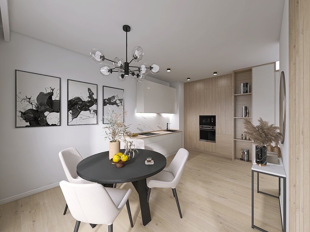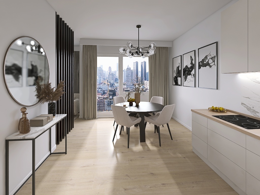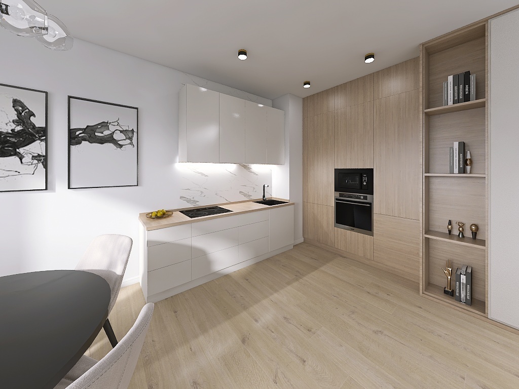 - pokoju z aneksem kuchennym ok. 20 m2 (z wyjściem na balkon ok. 6 m2),