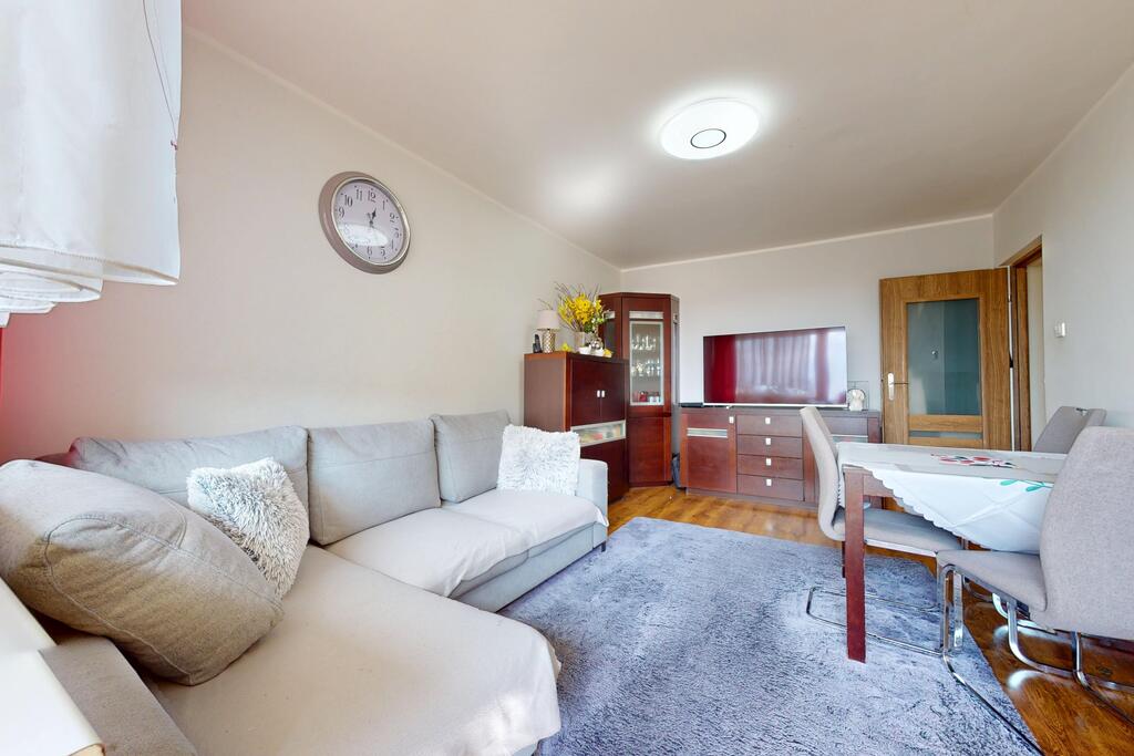 Mieszkanie znajduje się na 4-tym piętrze niskiego bloku z lat 80-tych z cegły. Na powierzchnię 49,5 m2 składają się: