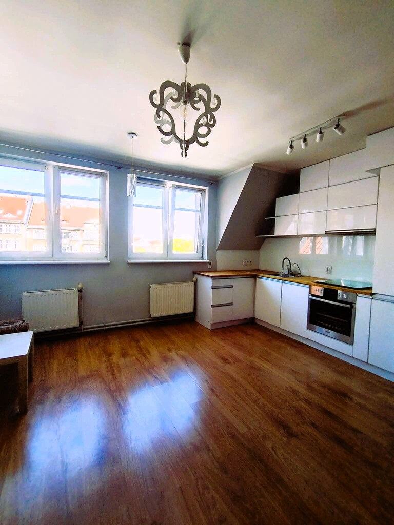 Dwupoziomowe mieszkanie przy ulicy Jagiellońskiej w SzczecinieNa sprzedaż przestronne, dwupoziomowe mieszkanie o powierzchni 64 m?, położone na trzecim piętrze bloku w spokojniejszej części ulicy Jagiellońskiej.Nieruchomość wyróżnia się przemyślanym układem, który w naturalny sposób oddziela strefę dzienną od prywatnej, zapewniając domownikom duży komfort codziennego życia. Dzięki lokalizacji na ostatniej kondygnacji wnętrze posiada unikalny, przytulny klimat, a dodatkowym atutem jest przynależna antresola/strych o powierzchni około 20 m?, służąca jako praktyczny schowek na rzeczy sezonowe.Pierwszy poziom mieszkania to otwarta, jasna przestrzeń dzienna o powierzchni około 30 m?, w której skład wchodzi salon z funkcjonalnym aneksem kuchennym oraz osobna toaleta. Kuchnia została wyposażona w meble na wymiar oraz kompletny sprzęt AGD, w tym lodówkę, zmywarkę i piekarnik.Na drugą kondygnację prowadzą schody z zabudową wykorzystującą każdy centymetr na przechowywanie. Znajdują się tam dwie ustawne sypialnie oraz główna łazienka z wanną. Całe mieszkanie jest gotowe do wprowadzenia, a stałe elementy wyposażenia, w tym pojemna szafa typu Komandor, pozostają do dyspozycji nowego właściciela.Lokalizacja na tzw. górce przy ulicy Jagiellońskiej gwarantuje dostęp do pełnej infrastruktury miejskiej przy jednoczesnym zachowaniu spokoju. W najbliższej okolicy znajdują się parki, uczelnie, szkoły oraz liczne punkty handlowo-usługowe. Mieszkanie jest ogrzewane z sieci miejskiej, co jest dużym udogodnieniem w tym typie budownictwa, a budynek znajduje się poza strefą płatnego parkowania.Cena nieruchomości wynosi 615 000 zł.Zapraszam do kontaktu w celu umówienia prezentacji tego wyjątkowego wnętrza.*powyższe informacje zostały sporządzone na podstawie oświadczeń i nie są ofertą w rozumieniu przepisów prawa - zalecamy ich osobistą weryfikację.