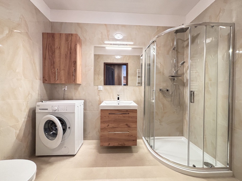 - łazienki z prysznicem i pralką.