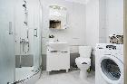 Mieszkanie jest umeblowane. Łazienka oraz kuchnia wyposażone są w niezbędny sprzęt AGD: chłodziarko-zamrażarkę, zlewozmywak, kuchenkę elektryczną, piekarnik oraz pralkę.