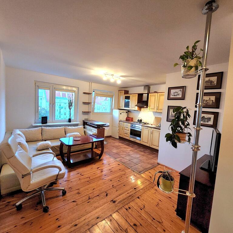 Do wynajęcia mieszkanie 3 pokojowe usytuoawane na 4 piętrze 5-piętrowego bloku. Na powierzchni 64m2 znajdują się : salon z aneksem kuchennym o łącznej powierzchni ok 20m2, duża sypialnia z wyjściem na balkon, mniejszy ok 10m2 pokój oraz łazienka z wc. W mieszkaniu znajduje się dużo pojemnych szaf. Jest ono wpełni wyposażone w meble i sprzęt AGD ( pralka, lodówka, zmywarka, TV ). Ściany malowane, na podłodze deska drewniana i terakota, okna PCV. Mieszkanie jest bardzo ciepłe i przytulne.Do kosztów wynajmu należy dodać opłaty za prąd, gaz do kuchenki gazowej oraz internet i TV -120zł.Blok znajduje się na terenie zamkniętym. Na obszernym podwórzu jest możliwość parkowania auta.W okolicy liczne sklepy, szkoły, komunikacja miejska ( autobusy i tramwaje).Polecam i zapraszam na prezentację.*powyższe informacje zostały sporządzone na podstawie oświadczeń i nie są ofertą w rozumieniu przepisów prawa - zalecamy ich osobistą weryfikację.