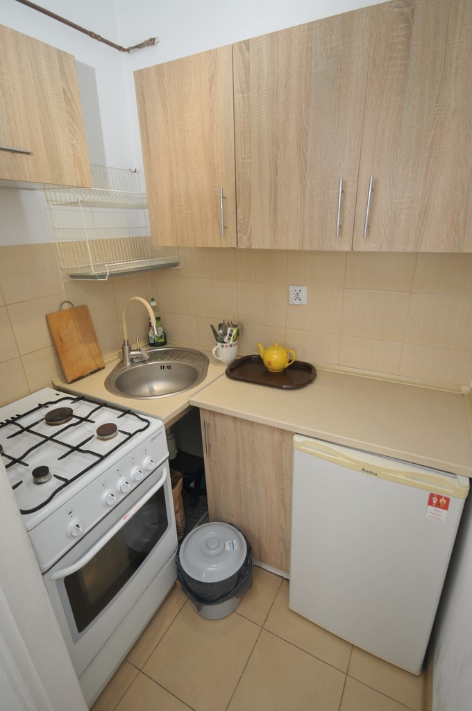 Mieszkanie składa się z pokoju dziennego, z którego wchodzi się o aneksu kuchennego (wnęka kuchenna). W kuchni lodówka podszawkowa, kuchenka gazowa.