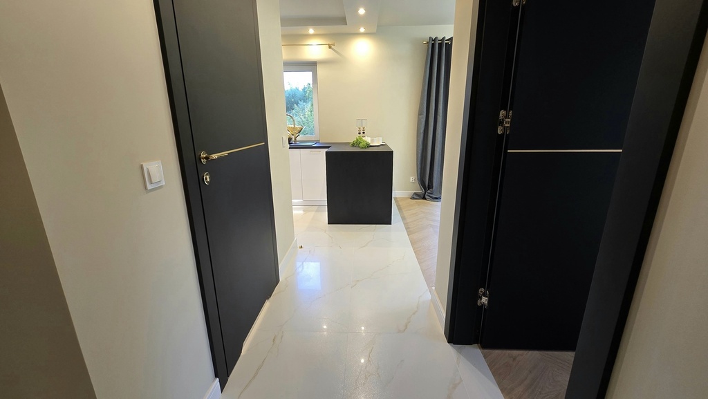 Apartament zaaranżowany i wykończony przez właścicieli z dbałością o każdy szczegół. Nieruchomość łączy w sobie komfort, wygodę i funkcjonalność oraz dobrą jakość materiałów wykończeniowych i wyselekcjonowaną kolorystykę. Podłogi w pokojach wyłożone są wysokiej jakości panelami a w kuchni i korytarzu gresem polerowanym. Ściany gładkie, malowane. Kuchnia zabudowany meblami na wymiar ze sprzętem AGD. W sypialni meble na wymiar z miejscem na łóżko o szerokości 1,8 m. Wyjątkowa łazienka z prysznicem w eleganckich kaflach z modną armaturą. W korytarzu pojemna szafa w zabudowie. Lokal gotowy do zamieszkania. Na życzenie Najemcy lokal może zostać umeblowany.