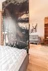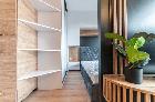 Mieszkanie posiada część dzienną z aneksem kuchennym, stołem do spożywania posiłków oraz z częścią na odpoczynek przed TV. Do tego za ścianką wydzielona część sypialniana z szafą i półkami na przechowywanie rzeczy. Meble w zabudowie z lodówką, zmywarką, okapem, płytą grzewczą, piekarnikiem i mikrofalówką. W szufladach dostępne talerze, sztućce itp. Na wyposażeniu pozostaje również żelazko, deska do prasowania, odkurzacz