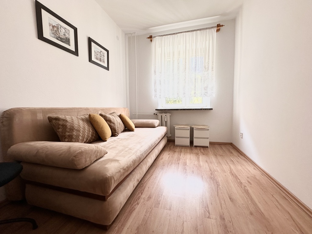 Na wynajem oferuję bardzo ładne , rozkładowe 3-pokojowe mieszkanie z balkonem , mieszczące się na parterze czteropiętrowego bloku.