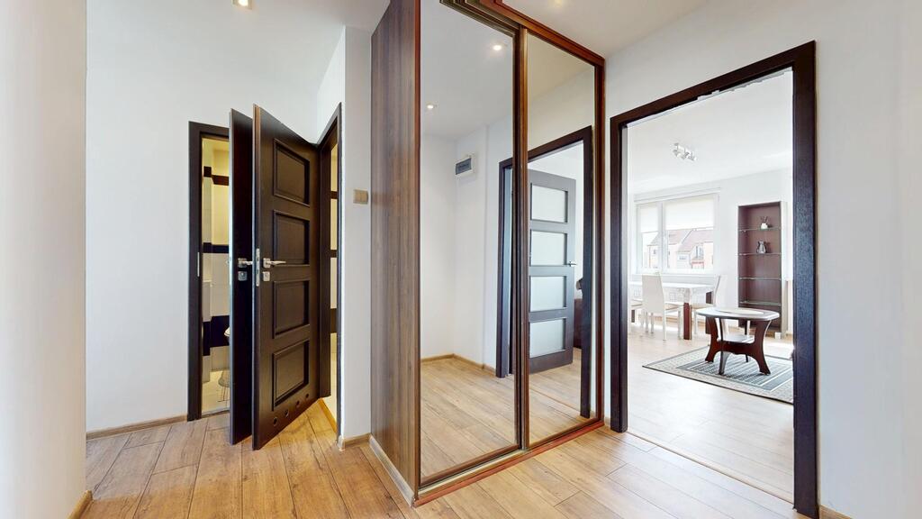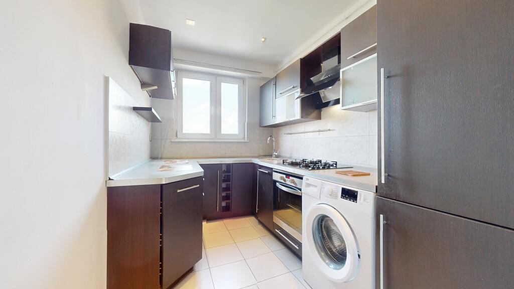 Mieszkanie rozkładowe o powierzchni 49m2, z widną kuchnią w zabudowie i sprzętem AGD.