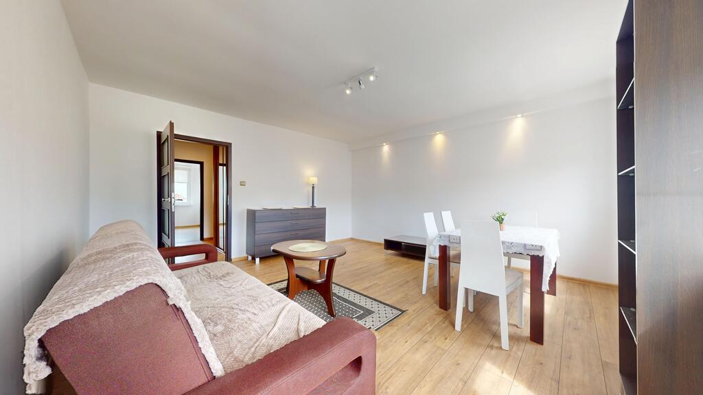Polecam na wynajem 2 pokojowe mieszkanie położone na osiedlu Majowym, w bliskiej odległości od szkoły, komunikacji miejskiej i sklepów.