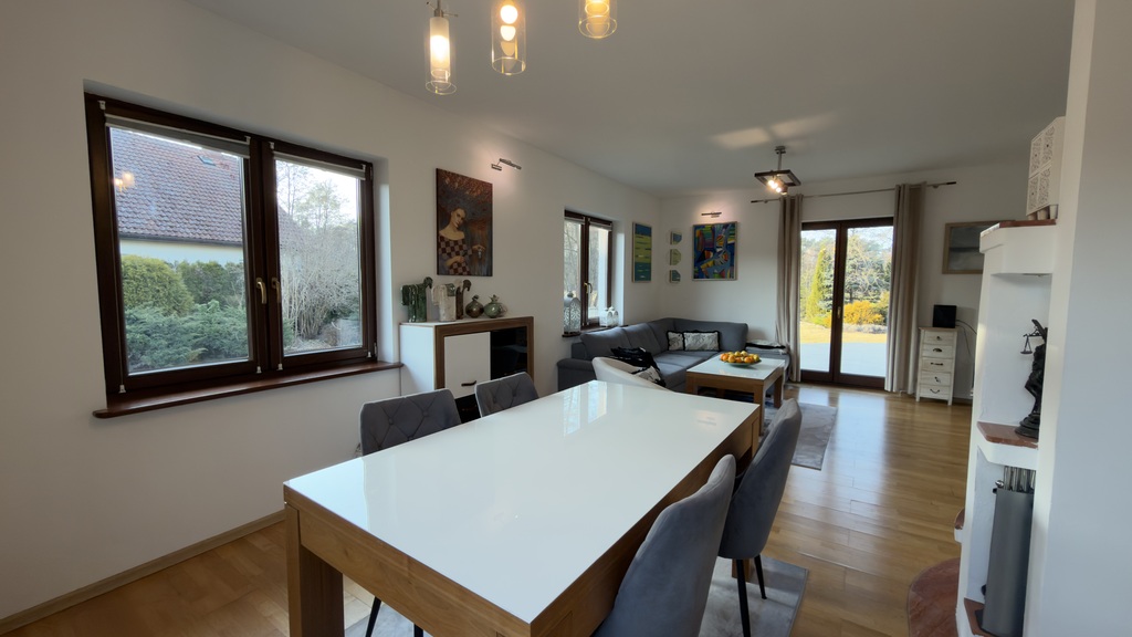 Serdecznie zapraszamy do zapoznania się z ofertą!Na sprzedaż dom jednorodzinny położony w Tanowie, w spokojnej i zielonej okolicy, idealnej dla osób szukających komfortu życia blisko natury.Budynek z 2009 roku, o powierzchni użytkowej 200 m2 (powierzchnia całkowita 400m2), usytuowany na działce o powierzchni 1626 m?. Dom parterowy z poddaszem użytkowym i garażem dwustanowiskowym w bryle budynku.Układ pomieszczeńParter:- przestronny salon połączony z otwartą kuchnią oraz wyjściem na wyjątkowo duży taras,- 2 sypialnie,- gabinet,- 2 łazienki, jedna wyposażona w wannę, druga w prysznic oraz WC,- pomieszczenie gospodarcze z piecem gazowym i pralką,- hall z szafą w zabudowie,- garaż dwustanowiskowy z dodatkowym miejscem do przechowywania.Poddasze użytkowe:- 2 duże sypialnie,- garderoba,- łazienka z prysznicem i WC,- bardzo jasny, przestronny hall.Ogród i działkaDom położony jest na pięknie zagospodarowanej działce o powierzchni 1626 m2. Nieruchomość otacza dużo zieleni, a bezpośrednio na działce liczne nasadzenia, które tworzą przyjemną, prywatną przestrzeń do wypoczynku. W bezpośrednim sąsiedztwie działki znajduje się spokojna rzeczka, a za nią łąka i ściana lasu.Duży taras stanowi idealne miejsce do relaksu i spotkań z rodziną lub przyjaciółmi. Przygotowano na nim gniazdo elektryczne pod jacuzzi. Na działce znajduje się również domek gospodarczy.W domu zastosowano ogrzewanie podłogowe na parterze, grzejniki na poddaszu. Ogrzewanie z kotła gazowego. W salonie kominek z płaszczem wodnym (rozprowadzeniem ciepła na górę i dół domu).Zamontowany został również centralny odkurzacz oraz system nawadniania ogrodu.LokalizacjaTanowo to miejscowość ceniona za spokojny, zielony charakter oraz bliskość Szczecina. W okolicy znajdują się liczne tereny rekreacyjne, lasy oraz ścieżki rowerowe, co sprawia, że jest to idealne miejsce dla osób ceniących ciszę, naturę i komfort życia poza miastem, z jednoczesnym szybkim dojazdem do jego centrum.Oferta dostępna wyłącznie w naszym biurze. Zapraszamy na prezentacje.*powyższe informacje zostały sporządzone na podstawie oświadczeń i nie są ofertą w rozumieniu przepisów prawa - zalecamy ich osobistą weryfikację.