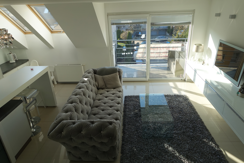 2- pokojowe mieszkanie o powierzchni 46,64 m2 (ok. 60 m2 po podłodze), usytuowane na II piętrze niskiego budynku na os. Tęczowe Ogrody w Warzymicach.Mieszkanie 2- poziomowe. I poziom 33,52 m2, drugi poziom 13,12 m2 powierzchni użytkowej.I POZIOM: salon (wyjście na taras) z aneksem kuchennym z zabudową meblową na wymiar oraz sprzętem AGD (lodówka, płyta indukcyjna, piekarnik, zlewozmywak, pochłaniacz).Łazienka w glazurze i terakocie z wanną, wc, umywalką.II POZIOM: sypialnia z garderobą.Mieszkanie wykończone w wysokim standardzie w jasnych barwach.Ściany gładzone i malowane, na podłogach panele.Okna PCV oraz połaciowe.Czynsz ok. 780 zł. W tym ogrzewanie oraz zimna i ciepła woda (sieć miejska).Budynek w bardzo dobrym stanie, zadbana klatka schodowa. Teren osiedla ogrodzony z miejscami parkingowymi oraz miejscem do zabaw dla dzieci.W pobliżu LIDL, NETTO, CZERWONA TOREBKA, BIEDRONKA.*powyższe informacje zostały sporządzone na podstawie oświadczeń i nie są ofertą w rozumieniu przepisów prawa - zalecamy ich osobistą weryfikację.