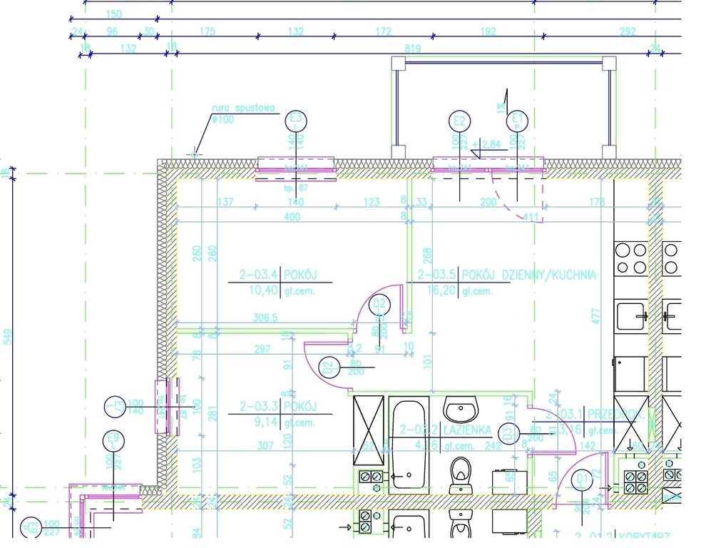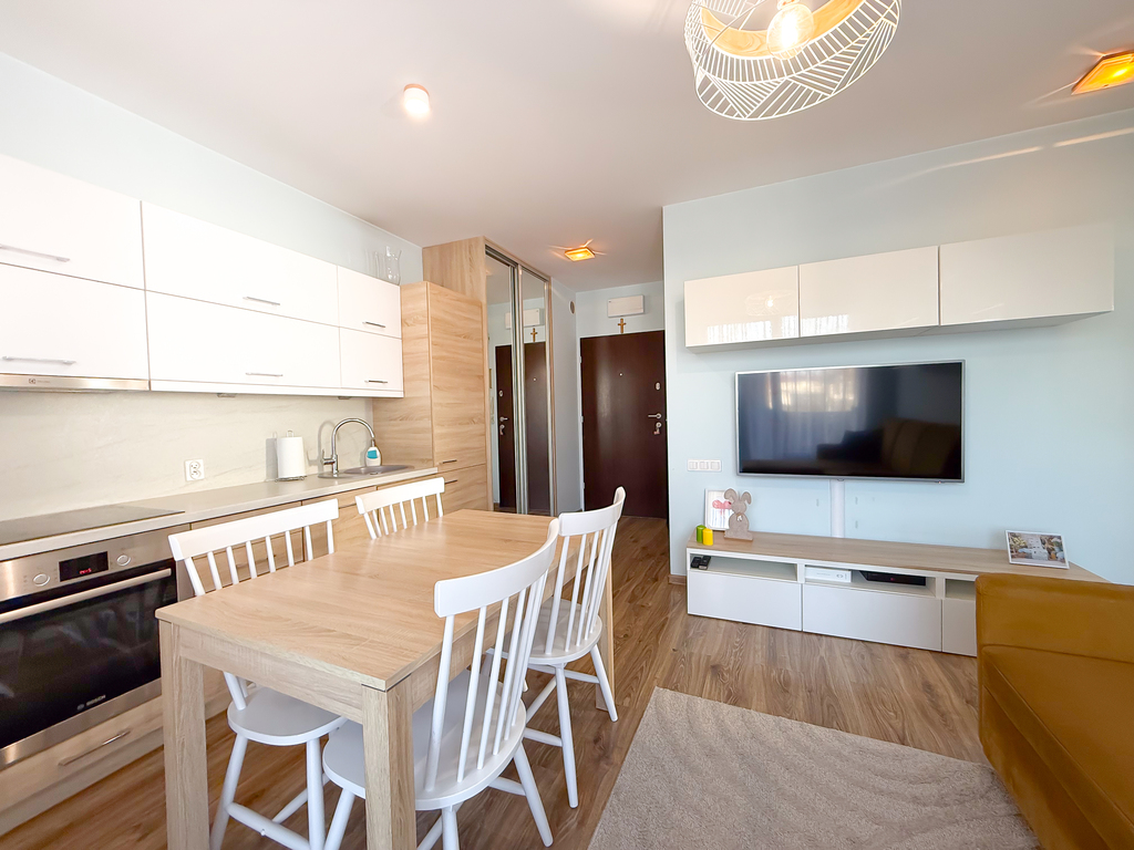- pokój dzienny z aneksem kuchennym i dużym balkonem - 16,2 m2