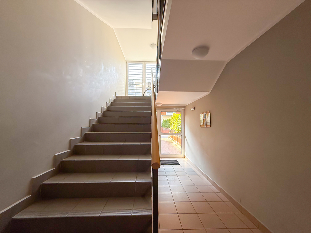 Przytulne mieszkanie trzypokojowe na pierwszym piętrze niskiego budynku.