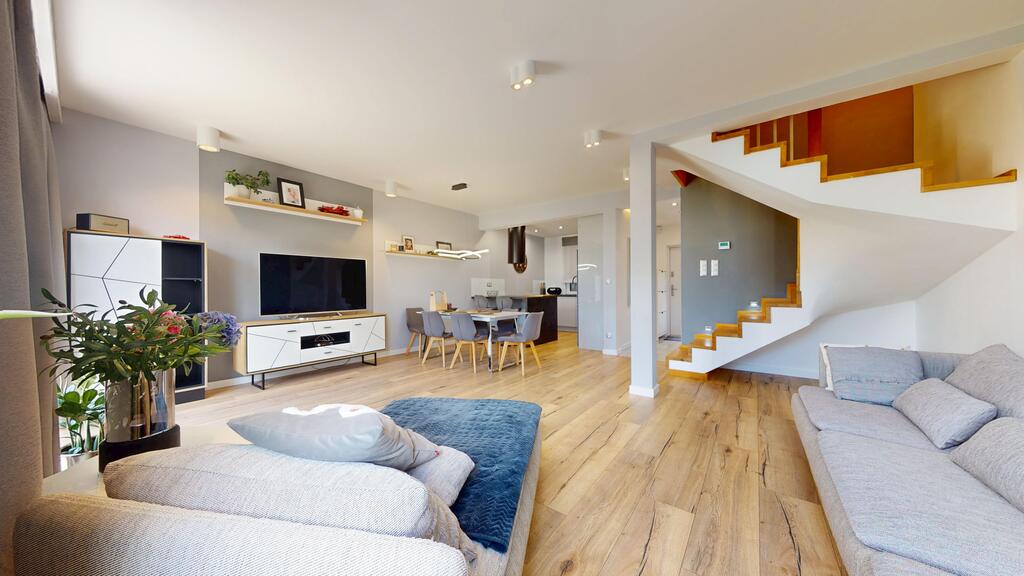 Przedmiotem sprzedaży jest połowa bliźniaka z 2017 roku o powierzchni użytkowej 95.98 m2. Na tę powierzchnię składają się: