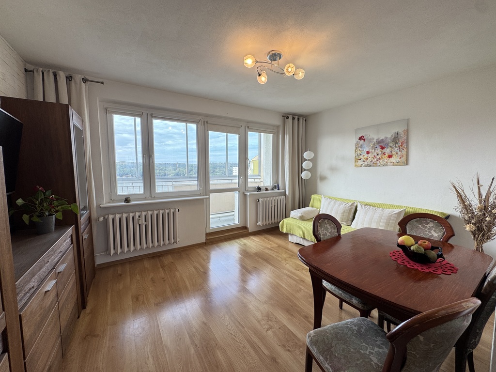 Zapraszam do zapoznania się z ofertą sprzedaży dużego mieszkania na os. Słonecznym.Lokal usytuowany jest na XII piętrze w budynku z początku lat 80-tych.Na powierzchnię mieszkania ponad 76m? składają się:*Ustawny salon z wyjściem na balkon z widokiem na puszczę bukową.*Trzy niezależne sypialnie*Łazienka + Oddzielne WC*Osobna kuchnia*PrzedpokójW mieszkaniu pełny rozkład, pokoje bardzo ustawne, wystawa okien na obie strony (salon z balkonem - południe, pozostałe pomieszczenia od północy z widokiem na panoramę osiedla oraz jezioro.Właściciele korzystają z piwnicy.Ogrzewanie i ciepła woda z sieci miejskiej. Spółdzielnia mieszkaniowa DĄB, czynsz w okolicy 995zł zawiera wszystkie opłaty poza prądem.Zielona i spokojna okolica - w pobliżu dużo punktów handlowo-usługowych, pętla autobusowa, pętla tramwajowa, parki, szkoły, miejsca do rekreacji, puszcza bukowa. Pod blokiem ogólnodostępny parking.Zachęcam do obejrzenia oferty na żywo.?OFERTA NA WYŁĄCZNOŚĆ?*powyższe informacje zostały sporządzone na podstawie oświadczeń i nie są ofertą w rozumieniu przepisów prawa - zalecamy ich osobistą weryfikację.
