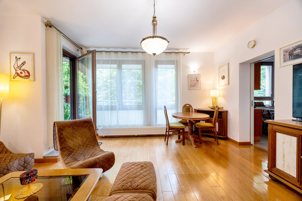 Mieszkanie, w którym każdy detal został dopracowany, by zapewnić najwyższy komfort codziennego życia. Duże, panoramiczne okna pozwalają cieszyć się widokiem na zieleń i dają poczucie przestronności. Dzięki wysokim sufitom (2,90 m), wnętrza wydają się jeszcze bardziej przestronne, co dodatkowo podkreśla elegancki charakter tego apartamentu.