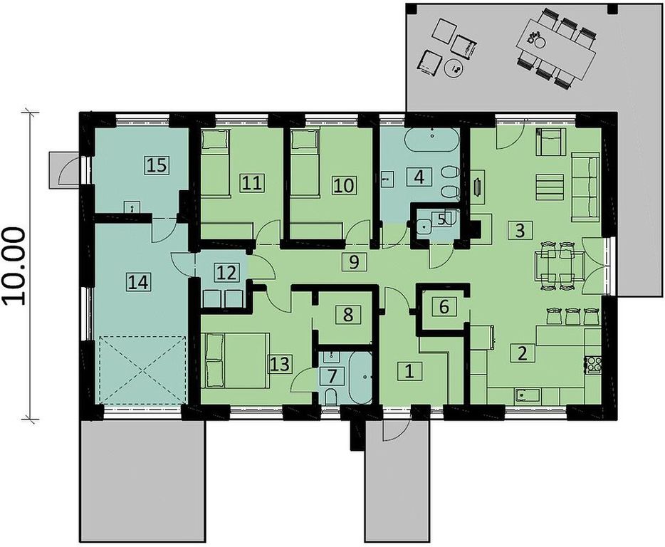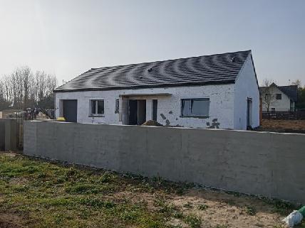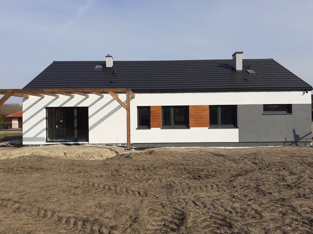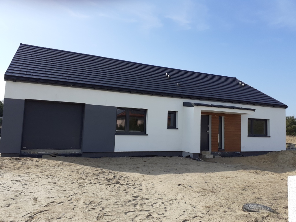 Łęgi, gmina Dobra, malowniczo położona miejscowość ok 19 km od centrum Szczecina, w pobliżu (5km) rezerwatu przyrody Świdwie.KUPUJĄCY ZWOLNIONY Z 2% PCC.Parterowy jednorodzinny dom wolnostojący , STAN DEWELOPERSKI . garaż1. Wiatrołap 7,51 m?2. Kuchnia 15,59 m?3. Pokój dzienny + jadalnia 24,17 m?4. Łazienka 7,54 m?5. Wc 1,62 m?6. Spiżarnia 2,01 m?7. Łazienka 3,39 m?8. Garderoba 3,39 m?9. Korytarz 10,54 m?10. Pokój 10,44 m?11. Pokój 10,44 m?12. Pom. gospodarcze 3,16 m?13. Pokój 12,84 m?14. Garaż jednostanowiskowy 19,20 m?15. Kotłownia 8,94 m?Poddasze ok 40 m2okna: Krispol trzyszybowe z ciepłą ramką, kolor zewn. antracyt, kolor wewn. białyrolety zewnętrzne: Krispol sterowane pilotemDach dwuspadowy, dachówka ceramiczna płaska Koramicmedia: woda z sieci, gaz, prąd, kanalizacja: szambo 10 m3, zbiornik na deszczówkę 5 m3. Wszystkie instalacje doprowadzone do budynku.Ogrzewanie gazowe, ocieplenie stropu wełna 20cmpis techniczny:fundamenty : ławy żelbetowe beton B25,ściany fundamentowe z bloczków betonowych ocieplone styropianem wodoodpornym grub. 15 cm, folia kubełkowa,izolacja przeciwwodna pozioma i pionowaściany zewnętrzne i nośne: bloczek z betonu komórkowego Ytong grub. 24 cm z "ciepłą" spoinąściany działowe: bloczek z betonu komórkowego Ytong grub. 11,5 cmwięźba dachowa: wiązary prefabrykowane z drewna klasy C24 zaimpregnowane grzybo i ognioochronnym impregnatempokrycie dachowe: dachówka ceramiczna płaska Koramicokna: Krispol trzyszybowe z ciepłą ramką, kolor zewn. antracyt, kolor wewn. białyrolety zewnętrzne: Krispol sterowane pilotembrama garażowa: Krispol z napędemdrzwi: Wikędpodłoga na poddaszu (niewliczane do metrażu): płyty OSB na konstrukcji drewnianej, około 40 m2, schody strychowe Fakrow kotłowni sufit podwieszany z płyt G-K ppoż. oraz docieplenie stropu wełną 25 cmcały strop docieplony wełną mineralną grub. 20 cmelewacja: styropian grub. 20 cm, tynk akrylowo-silikonowy z imitacją drewnaposadzka: cementowa zaizolowana styropianem grub.20 cmtynki: gipsowe, w łazienkach cementowo - wapienneinstalacje: elektryczna, telewizyjna, domofonowa, alarmowa, gniazdo trójfazowe w garażu i kuchniinstalacja c.o. : podłogówka w całym domu, kocioł Vaillant Ecotec pro z zasobnikiem Biawar 150, sterowniki w każdej sypialni i salonie, w łazienkach oprócz podłogówki grzejniki elektrycznekomin dymowy w salonieinstalacja gazowa: gaz w kotłowni i kuchniinstalacja wodna, kanalizacyjna, wentylacja grawitacyjnazagospodarowanie terenu: mur od frontu, teren wyrównanymedia: woda z sieci, gaz, prąd, kanalizacja: szambo 10 m3, zbiornik na deszczówkę 5 m3Wszystkie instalacje doprowadzone do budynku.Cena nie obejmuje sufitu podwieszanego z płyt G-K (oprócz kotłowni) oraz podjazdu.Możliwość wykonania za dodatkową opłatą.*powyższe informacje zostały sporządzone na podstawie oświadczeń i nie są ofertą w rozumieniu przepisów prawa - zalecamy ich osobistą weryfikację.