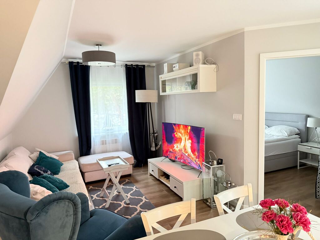 W ofercie posiadamy ładny apartament zlokalizowany w Łukęcinie, wynajmowany od lat i cieszący się bardzo dobrym zainteresowaniem. Powierzchnia w księdze wieczystej to 36,65m2, powierzchni po podłodze ok. 120m2. Budynek 4 kondygnacyjny powstał w 2017r. i posiada windę. Cały teren jest zamknięty i posiada całodobową ochronę i obsługę osiedla.Do dyspozycji mamy darmowy parking na terenie osiedla, odkryty basen, boisko do siatkówki, czy palenisko do grillowania.Lokal nie mieszkalny jest 2-poziomowy i posiada 5 pokoi. Gustownie wykończony apartament ma wiele akcentów nadmorskich.Na I poziomie hol, łazienka, duży pokój połączony z aneksem kuchennym oraz zamykana oddzielna sypialnia. Balkon z widokiem na las iglasty.II poziom to otwarta przestrzeń jako trzeci pokój, z niego wchodzimy do dwóch zamykanych sypialni.W całym lokalu ogrzewanie elektryczne, 2 oddzielne klimatyzatory. Niski czynsz 400zł.Łukęcin to osada letniskowa w północno-zachodniej Polsce położona w województwie zachodniopomorskim, w powiecie kamieńskim, w gminie Dziwnów, położona między Dziwnówkiem a Pobierowem, na Wybrzeżu Trzebiatowskim. Budynek, który powstał w 2017r. położony jest wśród iglastego lasu oddzielającego Bałtyk od miejscowości. W Łukęcinie jest piaszczysta i dosyć szeroka plaża. Główne wejście na plażę wiedzie po schodach. Na plaży znajduję się nieduża platforma widokowa.Zapraszamy!*powyższe informacje zostały sporządzone na podstawie oświadczeń i nie są ofertą w rozumieniu przepisów prawa - zalecamy ich osobistą weryfikację.