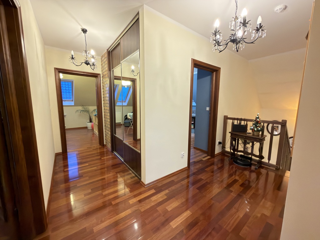 Na sprzedaż zadbany dom wolnostojący położony w spokojnej i zielonej części Świnoujścia ? Przytór, idealny dla rodziny lub osób szukających komfortu blisko miasta i terenów rekreacyjnych.Dom wybudowany w latach 2009/2010 - solidny i funkcjonalny z pięknie zagospodarowaną działką.Powierzchnia całkowita domu to 282,70[m2], natomiast użytkowa wynosi 165,20[m2] i składają się na nią:I POZIOM:* wiatrołap 2,70[m2]* hall z komunikacją 8,05[m2]* kotłownia z wejściem do garażu 3,95[m2]* W.C. 2,20[m2]* Dobrze doświetlona, otwarta kuchnia 16,35[m2]* przestronna jadalnia 17,20[m2]* salon z kominkiem i wyjściem na taras 26,35[m2]* sypialnia/gabinet 13,10[m2]Dodatkowo w bryle budynku jest jednostanowiskowy garaż z bramą otwieraną na pilota, o powierzchni 19,90[m2](nie wliczony w pow. użytkową).II POZIOM* hall z komunikacją 11,70[m2]* duża w pełni wyposażona łazienka 10,20[m2]* sypialnia z wyjściem na balkon od strony ogrodu - płd-wsch 17,90[m2]* sypialnia aktualnie wykorzystywana jako gabinet z wejściem na strych 17,25[m2]* sypialnia 9,90[m2]* pokój, który może służyć jako sypialnia, garderoba lub gabinet 8,35[m2]Dom jest ogrzewany przy użyciu dwuobiegowego pieca gazowego BUDERUS (produkcja po 2005r.), w kuchni oraz łazience jest instalacja ogrzewania podłogowego, natomiast w pozostałych pomieszczeniach są kaloryfery.Nieruchomość wykończona jest porządnymi materiałami z dbałością o szczegóły, na podłogach parteru oraz w hallu na piętrze położone jest drewno egzotyczne, drewniana stolarka w całym domu, w kuchni i łazience ogrzewanie podłogowe.? Działka i ogródPięknie zagospodarowana działka o powierzchni 1064 m?, oferująca wiele możliwości wypoczynkowych i użytkowych:Drewutnia z pomieszczeniem gospodarczym i strychemWiata wyłożona cegłą + murowane paleniskoWarzywnik z donicamiStudnia głębinowa (20?30 m) z hydroforem i zasobnikiem wody do podlewania ogroduFrontowy taras z kamienia (wykonany w ubiegłym roku)? Koszty utrzymania (orientacyjne)Woda + kanalizacja: ok. 180 zł/2 miesiąceGaz: ok. 450 zł/2 miesiącePrąd: ok. 500 zł/2 miesiącePodatek od nieruchomości: ok. 1000 zł/rokŚmieci: ok. 100 zł/miesiąc (wg zużycia wody)? Lokalizacja ? PrzytórSzkoła z oddziałem przedszkolnym: 5 minut pieszoKościół, mały sklep ? w pobliżuLiczne tereny zielone i spaceroweŚwinoujście ? ok. 10 minutMiędzyzdroje ? ok. 10 minutSERDECZNIE POLECAM I ZAPRASZAM NA PREZENTACJĘ!*powyższe informacje zostały sporządzone na podstawie oświadczeń i nie są ofertą w rozumieniu przepisów prawa - zalecamy ich osobistą weryfikację.