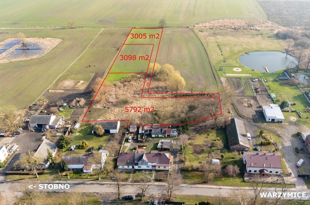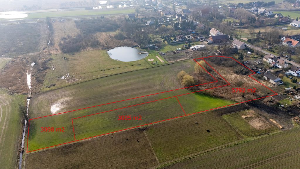 W planie zagospodarowania przestrzennego działka przeznaczona jest pod zabudowę zagrodową. Działka bezpośrednio z dojazdem drogą polną, uzbrojenie w drodze głównej - prąd, woda i kanalizacja. Teren płaski. Atrakcyjne położenie, dla osób ceniących ciszę z dala od hałasu wielkomiejskiego. Jest również możliwość zakupu dwóch pozostałych działek o powierzchni 3005 m2, 5792 m2.