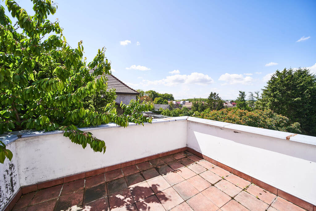 Na I piętrze znajduje się słoneczny salon z wyjściem na taras z pięknym widokiem, 2 duże sypialnie, kuchnia ze spiżarką, łazienka z oknem oraz przedpokój.