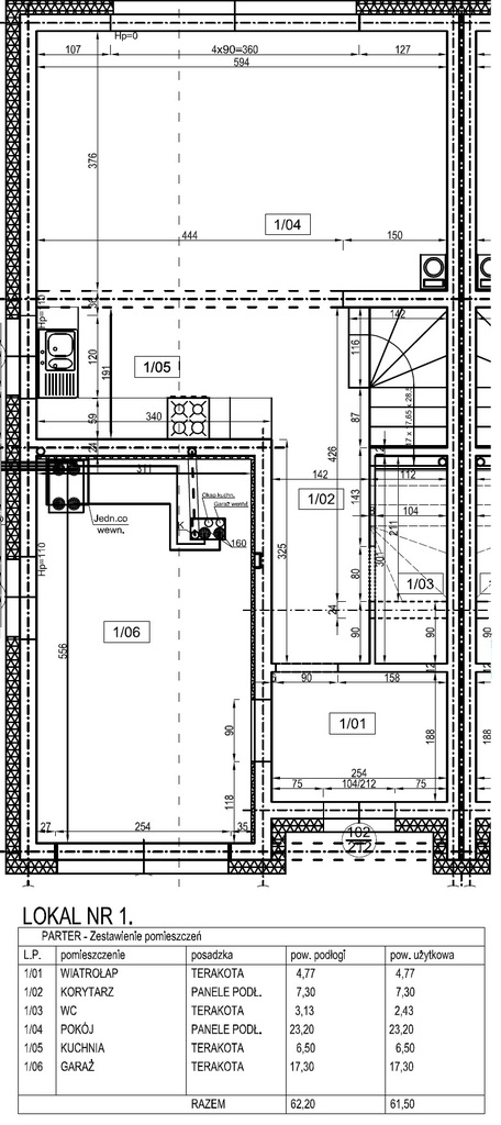 - garaż o pow. 17,3 m2