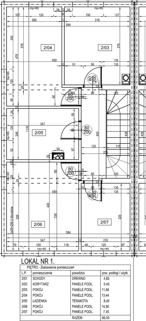 - korytarz o pow. 7,3m2