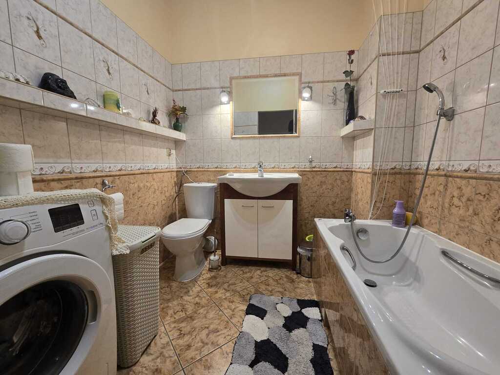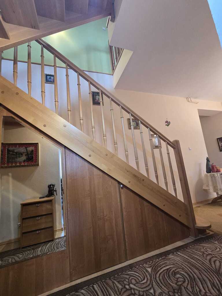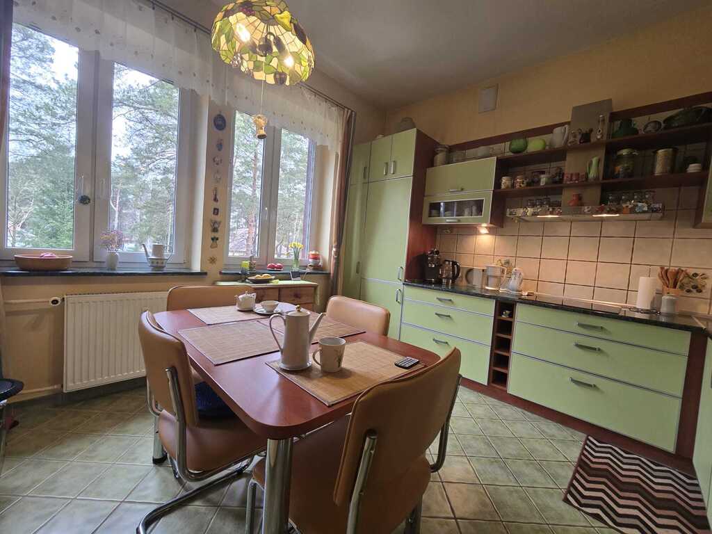 Budynek w którym znajduje się mieszkanie jest dobrze utrzymany, zadbany i czysty. Wymieniony został dach. W mieszkaniu na piętrze, wstawione są drewniane okna połaciowe marki Velux z markizami zewnętrznymi. W pozostałych pomieszczeniach są okna PCV. Na podłogach w mieszkaniu ułożone są panele oraz terakota, na ścianach położona jest gładź. W całym mieszkaniu została wymieniona instalacja elektryczna na miedzianą. Na ścianach mamy gładź. Ogrzewanie i ciepła woda jest z sieci miejskiej. W mieszkaniu nie ma gazu. Pomieszczenia w mieszkaniu są duże, przestronne i wysokie na 3 m. Na piętro prowadzą eleganckie, drewniane schody, które dodają uroku całemu wnętrzu. Kuchnia z meblami w zabudowie oraz sprzętem AGD, stworzona jest z myślą o wygodzie gotowania i wspólnych posiłkach.