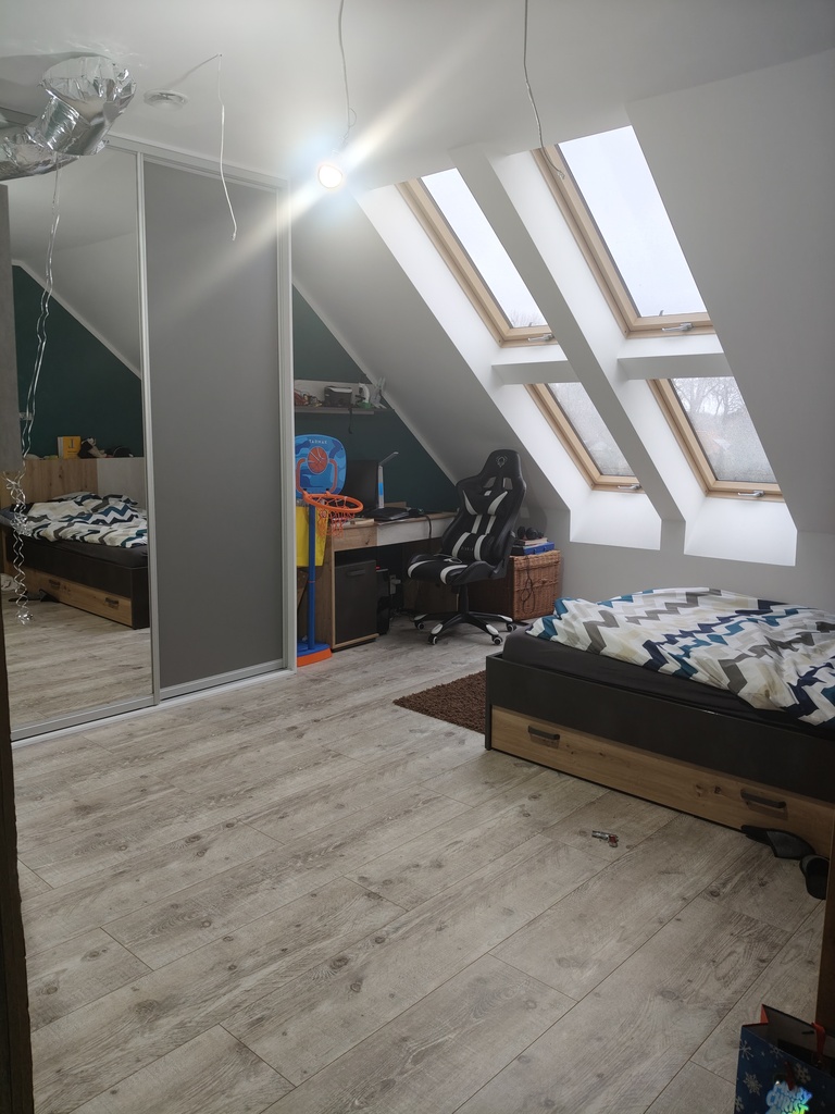 - dodatkowo poddasze zaadaptowane na pokój wraz z WC dla gości (39m2 po podłodze)