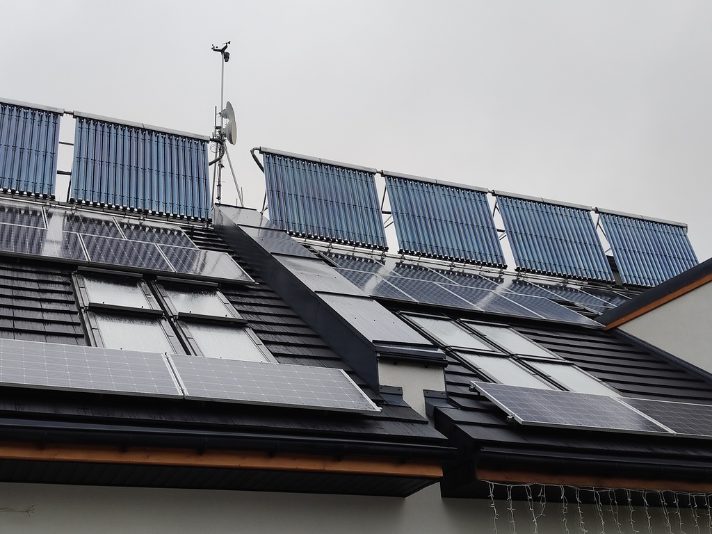 - kolektory słoneczne o mocy 10kW (ciepła woda + ogrzewanie domu) ustawione na całoroczne ogrzewanie budynku