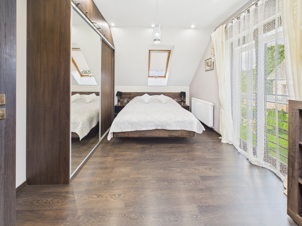 Dom wolnostojący w Chlebówku ? komfort, przestrzeń i ogród, o jakim marzysz!Na sprzedaż oferuję nowoczesny i funkcjonalny dom jednorodzinny o powierzchni całkowitej 152 m? (użytkowej 93,3 m?) z garażem w bryle budynku. Nieruchomość powstała według projektu ARCHON ?Dom w Perłówce" i została oddana do użytku w 2016 roku. Dom położony jest na dużej, pięknie zagospodarowanej działce o powierzchni 1823 m? w cichej i zielonej okolicy Chlebówka ? idealnej dla osób ceniących prywatność i spokój, a jednocześnie potrzebujących szybkiego dojazdu do miasta.Rozkład pomieszczeńParter:* przestronny i jasny salon z kominkiem i wyjściem na taras,* wygodna kuchnia z jadalnią oraz spiżarnią,* łazienka dla gości,* praktyczna kotłownia,* garaż jednostanowiskowy z bramą automatyczną Wiśniowski.Poddasze:* trzy ustawne sypialnie,* duża łazienka z wanną,* garderoba,* komunikacja z miejscem na schody,* strych ? dodatkowa przestrzeń do przechowywania.Standard i wyposażenieDom został zbudowany w technologii tradycyjnej (solbet, strop betonowy, dachówka ceramiczna), ocieplony styropianem grafitowym 15 cm, a dach wełną mineralną. Zastosowano wysokiej jakości okna trzyszybowe Oknoplast.Ogrzewanie zapewnia piec na ekogroszek z rozprowadzeniem podłogowym, a dodatkowe źródło ciepła stanowi kominek. Ciepła woda może być podgrzewana piecem lub alternatywnie elektrycznie.Dom sprzedawany jest z pełnym wyposażeniem ? gotowy do wprowadzenia.Atuty nieruchomościDuża, zadbana działka 1823 m? ? perfekcyjne miejsce na relaks, zabawy dzieci i spotkania rodzinne.Zadaszony taras z wygodną strefą wypoczynku.Liczne nasadzenia ozdobne zapewniają prywatność i wyjątkowy klimat ogrodu.Funkcjonalny układ pomieszczeń** ? idealny dla rodziny.Wysoka jakość użytych materiałów.LokalizacjaDom znajduje się w miejscowości Chlebówko, w spokojnym otoczeniu zieleni, z dogodnym dojazdem do pobliskich miejscowości:* Maszewo ? 10 km* Stargard ? 18 km* Goleniów ? 28 km* Szczecin ? 35 kmTo doskonałe miejsce dla osób, które chcą łączyć życie w otoczeniu natury z szybkim dostępem do większych miast.Jeśli marzysz o własnym domu z dużym ogrodem, gdzie cisza i spokój idą w parze z funkcjonalnością i komfortem ? ta oferta jest właśnie dla Ciebie.Zapraszam do kontaktu i umówienia prezentacji ? ten dom najlepiej zobaczyć na żywo!*powyższe informacje zostały sporządzone na podstawie oświadczeń i nie są ofertą w rozumieniu przepisów prawa - zalecamy ich osobistą weryfikację.