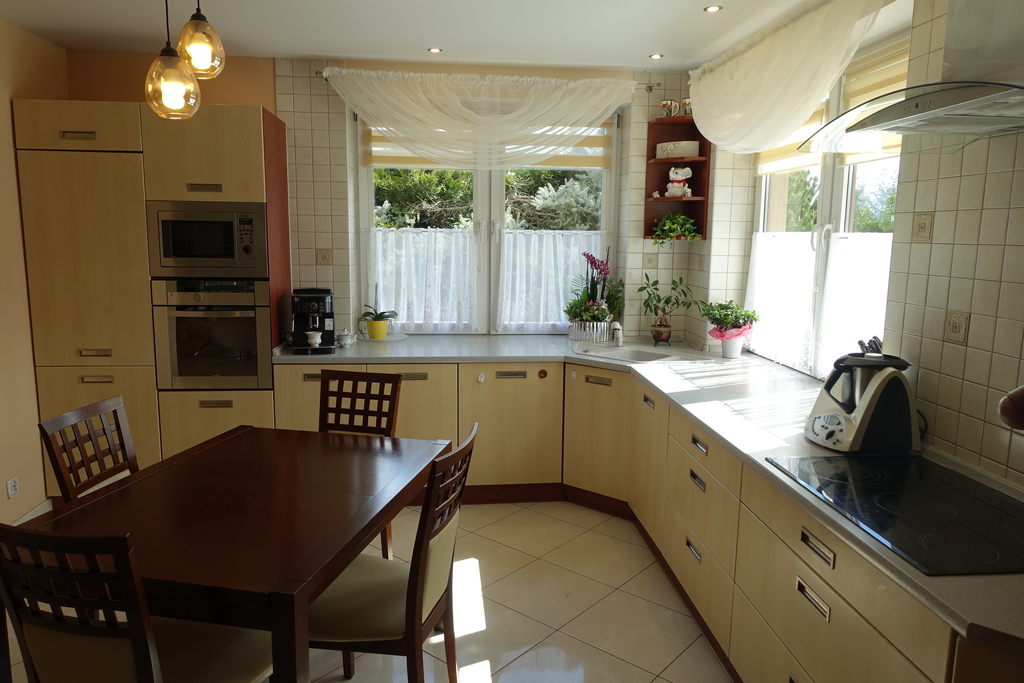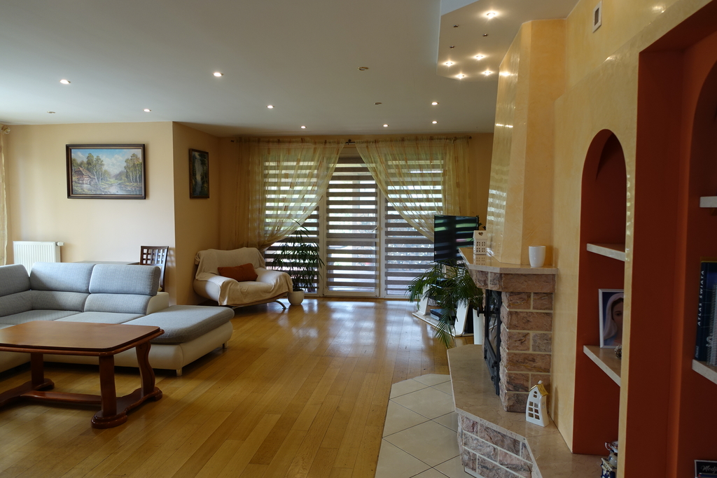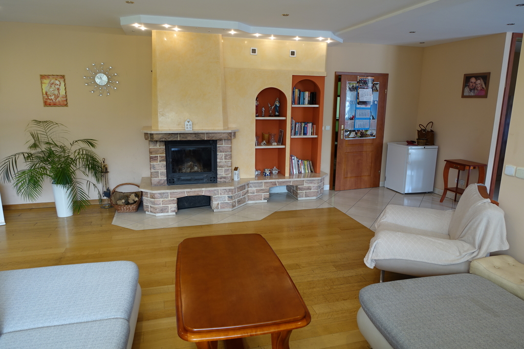 Wolno stojący 2- kondygnacyjny budynek mieszkalny z poddaszem użytkowym, bez podpiwniczenia o powierzchni 641,5 m2 położony w Chojnie na działce 1503 m2.Parametry budynku: /wg pierwotnego projektu/- powierzchnia zabudowy 510,2 m2- powierzchnia użytkowa - 641,5 m2- część mieszkalna 215,5 m2- część gospodarcza 17,8 m2- część usługowa 408,2 m2- wysokość budynku w kalenicy 8,05 m.Zestawienie powierzchni:PARTER:A. Część mieszkalna na parterze łącznie 134,8 m2:- komunikacja + schody - 28,8 m2- kuchnia - 14,2 m2- salon+ jadalnia - 39,7 m2- ogród zimowy - 7,9 m2- pokój - 14,5 m2- łazienka - 10,3 m2- pokój - 14,6 m2- garderoba - 3 m2- wc- 1,8 m2B. Część gospodarcza na parterze łącznie 17,8 m2:- skład opału - 10,1 m2- kotłownia - 5,6 m2- wc - 2,1 m2C. Część usługowa na parterze łącznie 263,3 m2:- sala ćwiczeń 88,9 m2- komunikacja - 50 m2- sala rekreacji - 32 m2- pok. wypoczynkowy - 10,4 m2- zaplecze - 2,6 m2- pom. socjalne - 7,1 m2- pomieszczenie gospodarcze - 8,8 m2- wc personelu - 2,5 m2- szatnia męska - 9,2 m2- umywalnia męska - 9,2 m2- wc męskie - 2,4 m2- wc sauny - 2 m2- sauna 16,2 m2- wc damskie - 1,5 m2- umywalnia damska - 7,1 m2- szatnia damska - 8,9 m2- solarium - 5 m2.PODDASZEA. Część mieszkalna łącznie 80,7 m2 (po podłodze 111 m2):- komunikacja - 25,4 m2 (34,2 m2 po podłodze)- pokój - 23 m2 (29 m2 po podłodze)- pokój - 12 m2 (17 m2 po podłodze)- łazienka - 7,5 m2 (10,3 m2 po podłodze)- pokój - 10,3 m2 (16 m2 po podłodze)- wc - 2,5 m2 (4,5 m2 po podłodze)B. Część usługowa na poddaszu łącznie 144,9 m2 (po podłodze 217,8 m2):- sala ćwiczeń - 50,3 m2 (76,5 m2 po podłodze)- gabinet - 10 m2 (14 m2 po podłodze)- gabinet - 14,2 m2 (26,2 m2 po podłodze)- gabinet - 9,8 m2 (22,4 m2 po podłodze)- salon - 22,8 m2 (32 m2 po podłodze)- zaplecze - 7,1 m2 (13,8 m2 po podłodze)- wc - 2,5 m2 (2,5 m2 po podłodze)- komunikacja - 18,9 m2 (21 m2 po podłodze)- schody - 9,4 m2 (9,4 m2 po podłodze)W pierwotnej wersji dom był przeznaczony do zamieszkania dla właścicieli oraz prowadzona była działalność usługowa.W chwili obecnej dom przeznaczony jest do zamieszkania z ewentualną możliwością wynajmu pokoi.Istnieje możliwość zmiany sposobu użytkowania.Bliskość granicy sprzyja możliwości wynajęcia pokoi pracownikom pracującym po niemieckiej stronie granicy.Dom posadowiony na betonowym fundamencie, ściany z pustaków ceramicznych o grubości 25 cm. ceramicznej, strop żelbetowy. Dwa niezależne wejścia do budynku.Dach wielospadowy pokryty dachówką ceramiczną. Na terenie działki znajdują się 4 miejsca postojowe.Stolarka okienna z PCV, natomiast stolarka drzwiowa drewniana. Wysokość budynku w kalenicy 8,05 m.A detached 2-storey residential building with an attic, without a basement, with an area of 641.5 m2, located in Chojna on a plot of 1503 m2. Building parameters: /according to the original design/ - building area 510.2 m2 - usable area - 641.5 m2 - residential part 215.5 m2 - utility part 17.8 m2 - service part 408.2 m2 - building height at the ridge 8.05 m. Area breakdown: GROUND FLOOR: A. Residential part on the ground floor in total 134.8 m2: - communication + stairs - 28.8 m2 - kitchen - 14.2 m2 - living room + dining room - 39.7 m2 - winter garden - 7.9 m2 - room - 14.5 m2 - bathroom - 10.3 m2 - room - 14.6 m2 - wardrobe - 3 m2 - toilet - 1.8 m2 B. Utility part on the ground floor in total 17.8 m2: - fuel storage - 10.1 m2 - boiler room - 5.6 m2 - toilet - 2.1 m2 C. Service part on the ground floor: total of 263.3 m2: - exercise room 88.9 m2 - communication - 50 m2 - recreation room - 32 m2 - lounge - 10.4 m2 - back room - 2.6 m2 - social room - 7.1 m2 - utility room - 8.8 m2 - staff toilet - 2.5 m2 - men's locker room - 9.2 m2 - men's washroom - 9.2 m2 - men's toilet - 2.4 m2 - sauna toilet - 2 m2 - sauna 16.2 m2 - women's toilet - 1.5 m2 - women's washroom - 7.1 m2 - women's locker room - 8.9 m2 - solarium - 5 m2. ATTIC A. Residential part in total 80.7 m2 (111 m2 on the floor): - communication - 25.4 m2 (34.2 m2 on the floor) - room - 23 m2 (29 m2 on the floor) - room - 12 m2 (17 m2 on the floor) - bathroom - 7.5 m2 (10.3 m2 on the floor) - room - 10.3 m2 (16 m2 on the floor) - toilet - 2.5 m2 (4.5 m2 on the floor) B. Service part in the attic in total 144.9 m2 (217.8 m2 on the floor): - exercise room - 50.3 m2 (76.5 m2 on the floor) - study - 10 m2 (14 m2 on the floor) - study - 14.2 m2 (26.2 m2 on the floor) - study - 9.8 m2 (22.4 m2 on the floor) - living room - 22.8 m2 (32 m2 on the floor) - utility room - 7.1 m2 (13.8 m2 on the floor) - toilet - 2.5 m2 (2.5 m2 on the floor) - communication - 18.9 m2 (21 m2 on the floor) - stairs - 9.4 m2 (9.4 m2 on the floor)In the original version, the house was intended for residence for the owners and service activities were carried out. Currently, the house is intended for residence with the possible possibility of renting rooms. It is possible to change the method of use. The proximity of the border favors the possibility of renting rooms to employees working on the German side of the border. The house is set on a concrete foundation, walls made of 25 cm thick ceramic blocks, reinforced concrete ceiling. Two independent entrances to the building. Multi-pitched roof covered with ceramic roof tiles. There are 4 parking spaces on the plot. PVC window joinery, while the door joinery is wooden. The height of the building at the ridge is 8.05 m.*powyższe informacje zostały sporządzone na podstawie oświadczeń i nie są ofertą w rozumieniu przepisów prawa - zalecamy ich osobistą weryfikację.