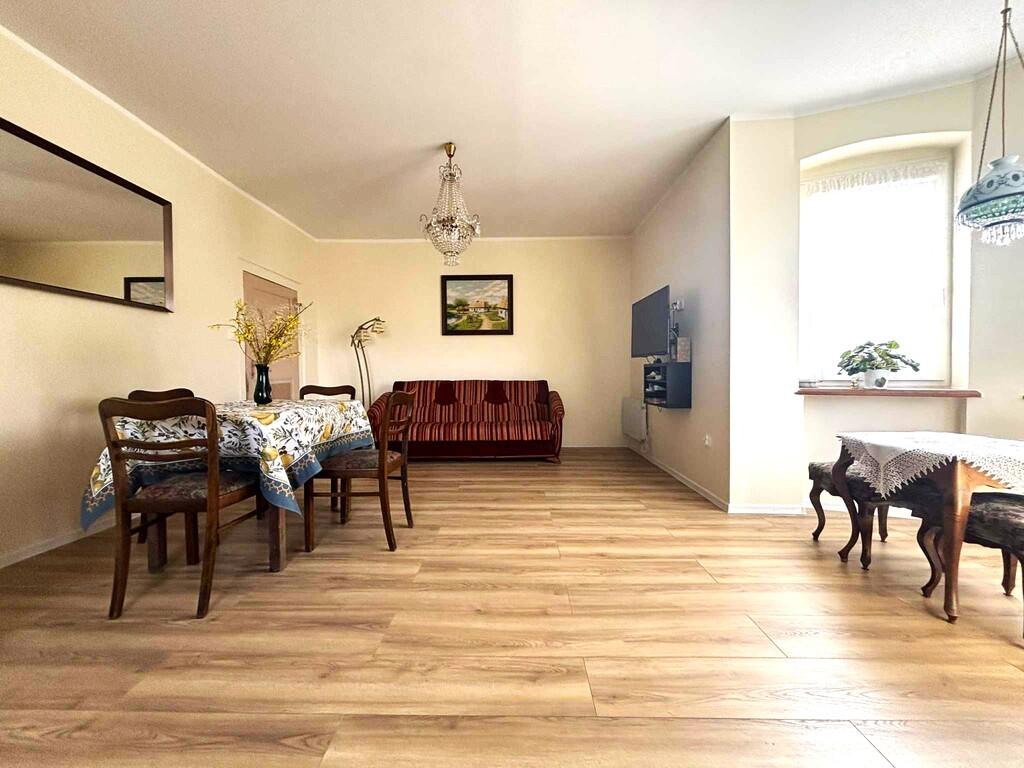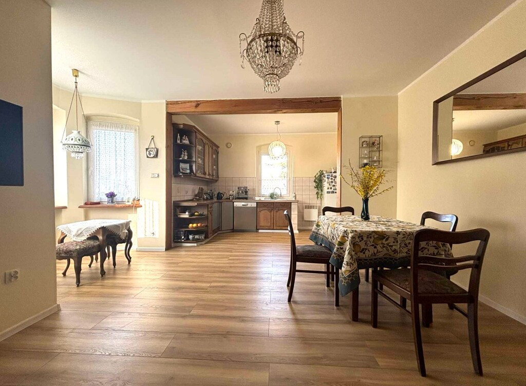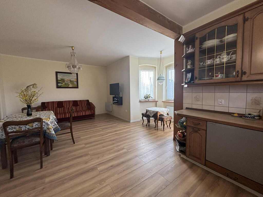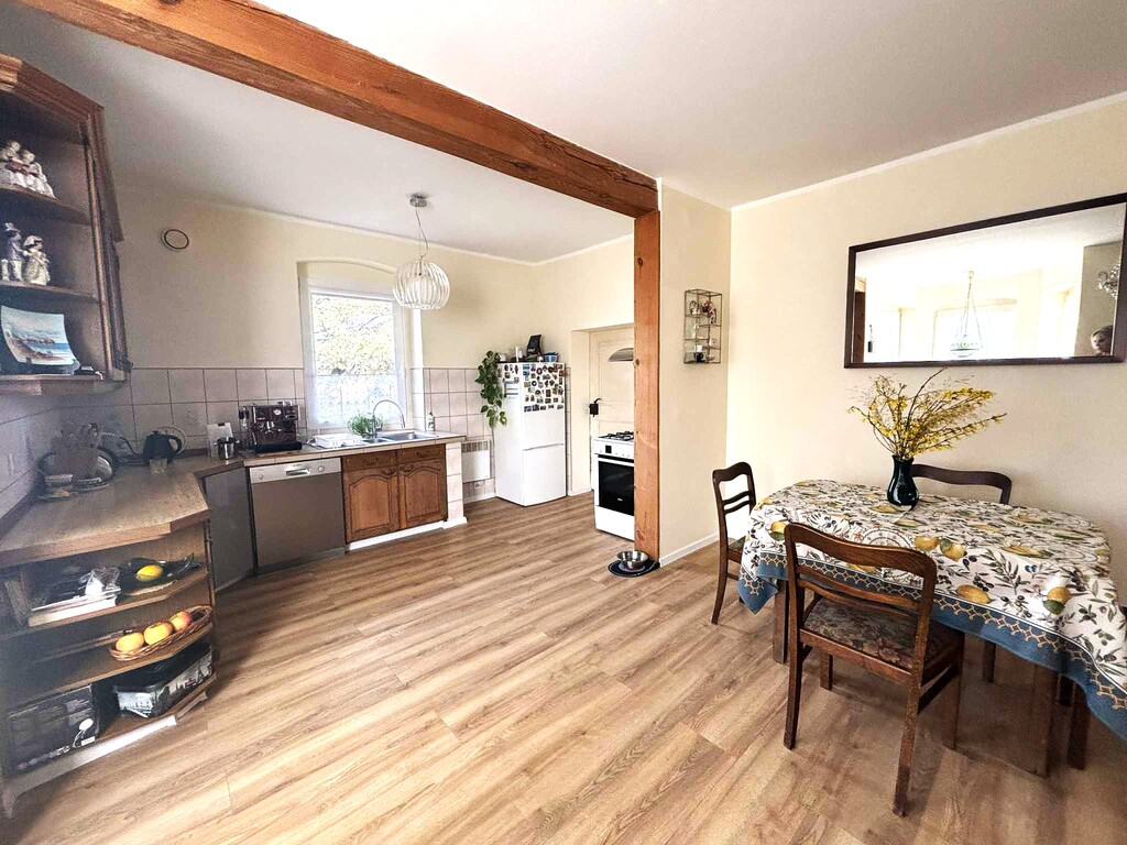 Oferujemy na sprzedaż piękny i klimatyczny dom z duszą położony w miejscowości Dębogóra oddalonej od Gryfina około 12 km, odległość do Szczecina około 30 km, do granicy państwa około 30 km.Oferowany budynek to dom wolnostojący z początku XX wieku , częściowo podpiwniczony, parterowy z poddaszem użytkowym (do adaptacji).Budynek o powierzchni użytkowej 141,59 m2, posadowiony na działce o pow. 616 m2, do której bezpośrednio przylega działka o pow. 1885 m2 zabudowana budynkiem gospodarczym. Przedmiotem niniejszej oferty są dwie nieruchomości o łącznej powierzchni 2501 m2.Stan techniczny i układ funkcjonalnyBudynek w bardzo dobrym stanie technicznym gotowy do zamieszkania bez potrzeby ponoszenia dodatkowym kosztów.Pokrycie dachowe ceramiczne, okna trzyszybowe (wymienione w zeszłym roku) , wymieniona instalacja elektryczna i wodnokanalizacyjna, ocieplenie budynku od wewnątrz.Niespełna 3 lata temu na parterze budynku przeprowadzono remont- wymienione zostały podłogi, odświeżone ściany, łazienka została wykończona w nowej glazurze i terakocie, sanitariaty dobrej klasy.Powierzchnia użytkowa parteru wynosi 73, 56 m2 i składa się z pokoju dziennego z aneksem kuchennym (łączna pow. około 30 m2), przedpokoju (7,82 m2) dwóch sypialni (14,91 i 13,28 m2), łazienki z wc (5,49 m2) i praktycznego pomieszczenia gospodarczego pralni (2,34 m2) które znajduje się przy łazience.Poddasze do adaptacji, powierzchnia użytkowa po adaptacji 68,03 m2. Został sporządzony projekt budowlany, który Właściciel może przekazać Nabywcy. Zgodnie z projektem na tym poziomie zaplanowano trzy pokoje o pow. 9,98 m2, 22,44 m2, 26,18 m2 i korytarz 9,93 m2.Ogród i mediaDziałka płaska, ogrodzona, częściowo zagospodarowana, pozostaje jeszcze sporo miejsca na realizacje wymarzonego ogrodu, wydzielenie strefy rekreacyjnej, warzywnika itd.Poza budynkiem mieszkalnym na posesji budynek gospodarczy w dobrym stanie technicznym, a także drewniana wiata na dwa samochody.Media: woda, energia elektryczna, szambo ekologiczne, zainstalowano zmiękczacz wody, ogrzewanie elektryczne, w łazience podłogowe, dodatkowo kominek.Podatek od nieruchomości 518 zlł rocznie.Informacje dodatkoweW cenie domu właściciel może pozostawić większość mebli, a także sprzęt AGD. Krótki okres wydania.W miejscowości sklep spożywczy, przystanek autobusowy, autobus szkolny. W bliskiej okolicy bardzo ładne tereny spacerowe, oraz pozostałości dawnego majątku, który w XVIII wieku należał do Fryderyka Wilhelma von Hohenzollerna.Polecamy i zapraszamy na prezentacje.*powyższe informacje zostały sporządzone na podstawie oświadczeń i nie są ofertą w rozumieniu przepisów prawa - zalecamy ich osobistą weryfikację.